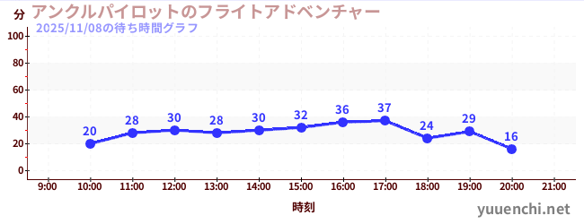 2025/11/08の待ち時間グラフ (アンクルパイロットのフライトアドベンチャー)
