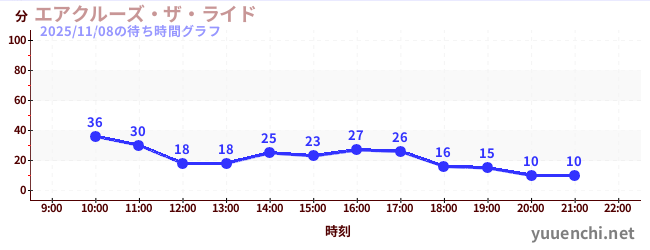 2025/11/08の待ち時間グラフ (エアクルーズ・ザ・ライド)