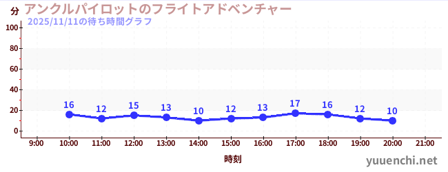 2025/11/11の待ち時間グラフ (アンクルパイロットのフライトアドベンチャー)