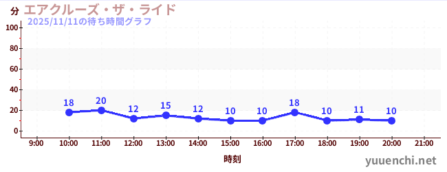 2025/11/11の待ち時間グラフ (エアクルーズ・ザ・ライド)