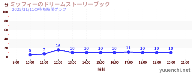 2025/11/11の待ち時間グラフ (ミッフィーのドリームストーリーブック)
