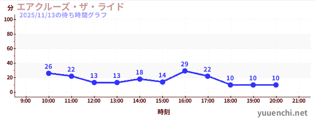 2025/11/13の待ち時間グラフ (エアクルーズ・ザ・ライド)