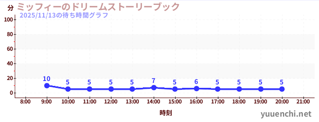 2025/11/13の待ち時間グラフ (ミッフィーのドリームストーリーブック)