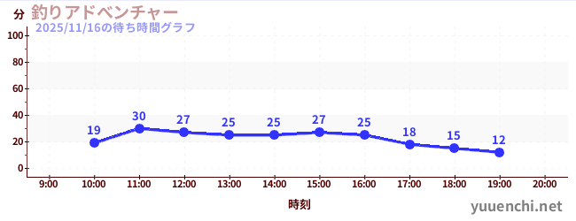 2025/11/16の待ち時間グラフ (釣りアドべンチャー)
