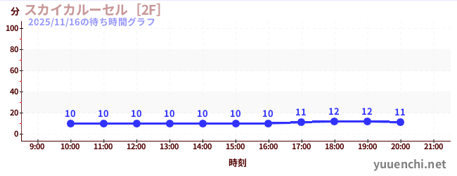 2025/11/16の待ち時間グラフ (スカイカルーセル[2F])