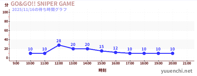 2025/11/16の待ち時間グラフ (GO&GO!! SNIPER GAME)