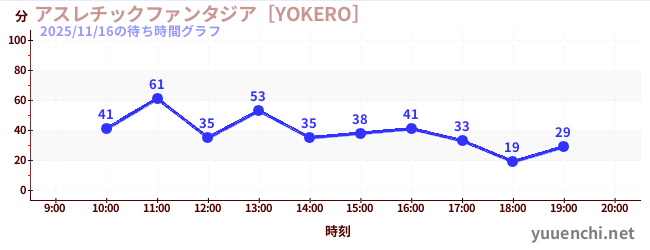 2025/11/16の待ち時間グラフ (アスレチックファンタジア[YOKERO])