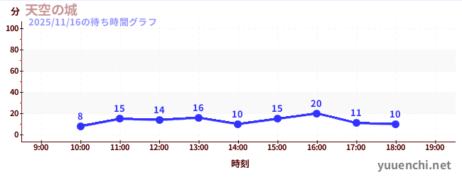 2025/11/16の待ち時間グラフ (天空の城)