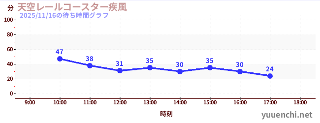 2025/11/16の待ち時間グラフ (天空レールコースター疾風)