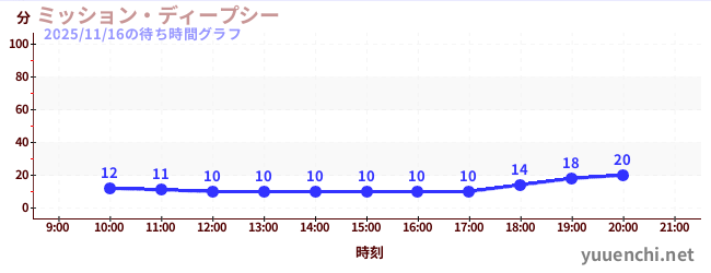 2025/11/16の待ち時間グラフ (ミッション・ディープシー)