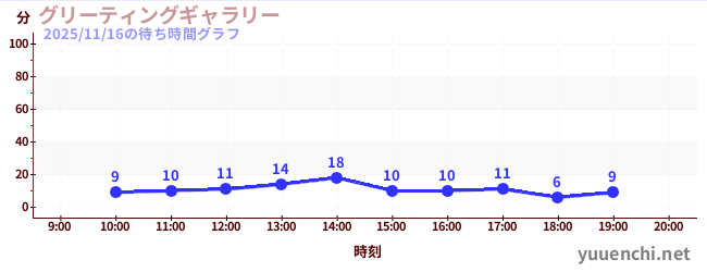 2025/11/16の待ち時間グラフ (グリーティングギャラリー)