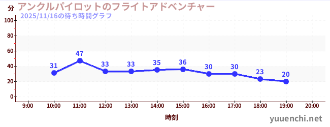 2025/11/16の待ち時間グラフ (アンクルパイロットのフライトアドベンチャー)