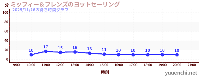2025/11/16の待ち時間グラフ (ミッフィー&フレンズのヨットセーリング)