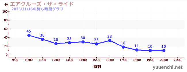 2025/11/16の待ち時間グラフ (エアクルーズ・ザ・ライド)