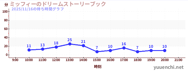 2025/11/16の待ち時間グラフ (ミッフィーのドリームストーリーブック)