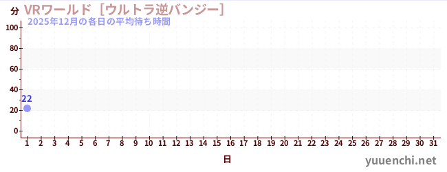 2025/12の一日平均待ち時間 (VRワールド[ウルトラ逆バンジー])