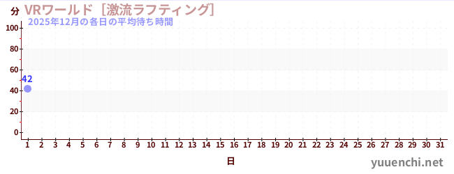 2025/12の一日平均待ち時間 (VRワールド[激流ラフティング])