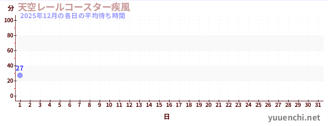 2025/12の一日平均待ち時間 (天空レールコースター疾風)