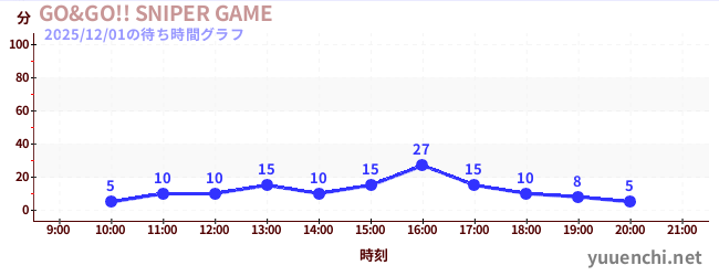 2025/12/01の待ち時間グラフ (GO&GO!! SNIPER GAME)
