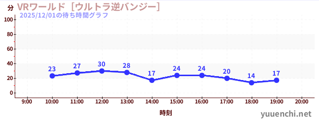 2025/12/01の待ち時間グラフ (VRワールド[ウルトラ逆バンジー])