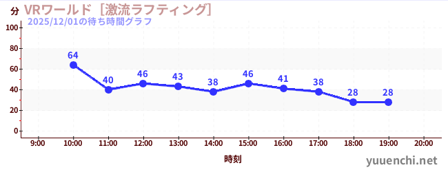 2025/12/01の待ち時間グラフ (VRワールド[激流ラフティング])