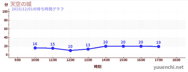 2025/12/01の待ち時間グラフ (天空の城)
