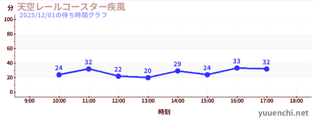 2025/12/01の待ち時間グラフ (天空レールコースター疾風)