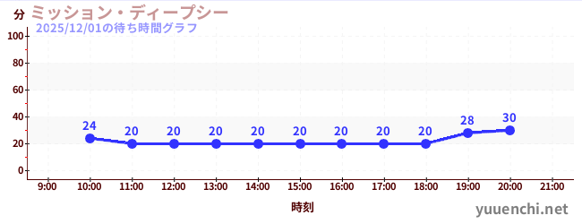 2025/12/01の待ち時間グラフ (ミッション・ディープシー)