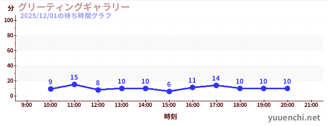 2025/12/01の待ち時間グラフ (グリーティングギャラリー)