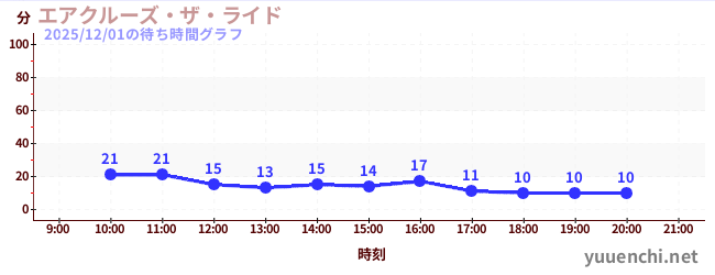2025/12/01の待ち時間グラフ (エアクルーズ・ザ・ライド)