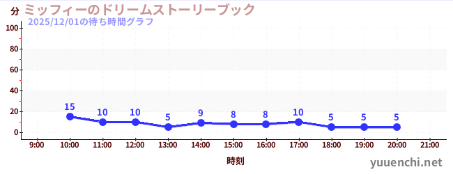 2025/12/01の待ち時間グラフ (ミッフィーのドリームストーリーブック)