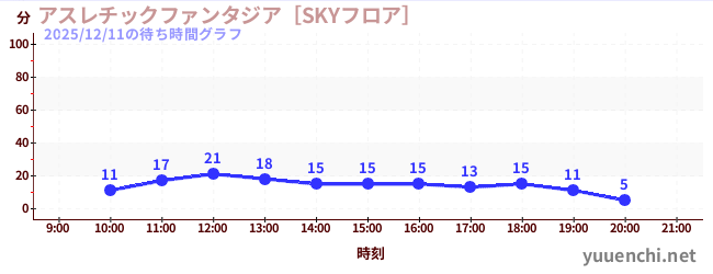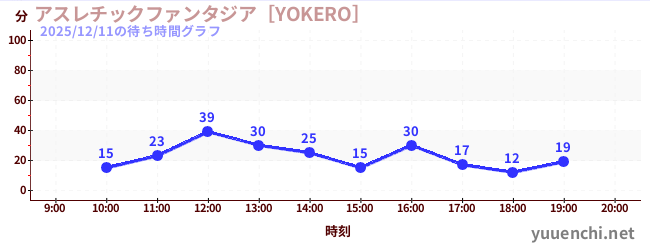 2025/12/11の待ち時間グラフ (アスレチックファンタジア[YOKERO])