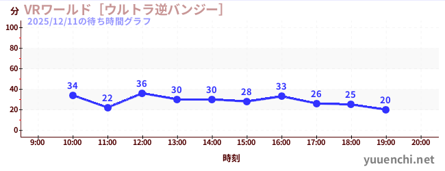 2025/12/11の待ち時間グラフ (VRワールド[ウルトラ逆バンジー])