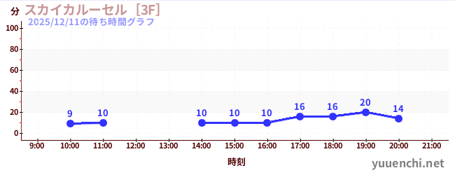 2025/12/11の待ち時間グラフ (スカイカルーセル[3F])
