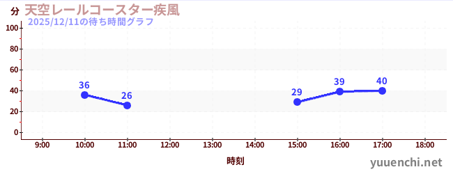 2025/12/11の待ち時間グラフ (天空レールコースター疾風)