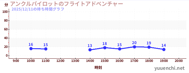 2025/12/11の待ち時間グラフ (アンクルパイロットのフライトアドベンチャー)