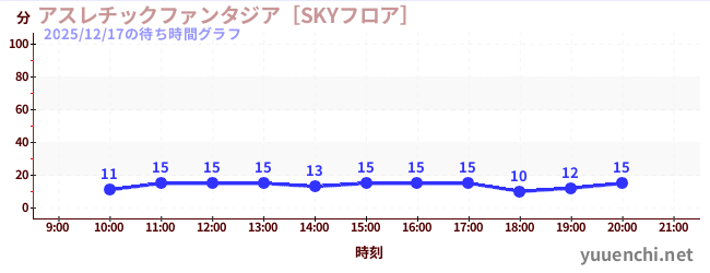 2025/12/17の待ち時間グラフ (アスレチックファンタジア[SKYフロア])