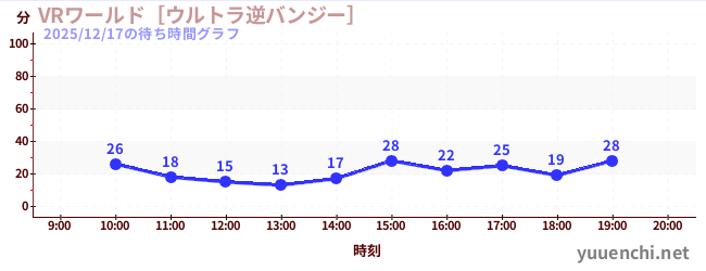 2025/12/17の待ち時間グラフ (VRワールド[ウルトラ逆バンジー])