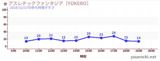 2025/12/17の待ち時間グラフ (アスレチックファンタジア[YOKERO])