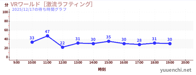 2025/12/17の待ち時間グラフ (VRワールド[激流ラフティング])
