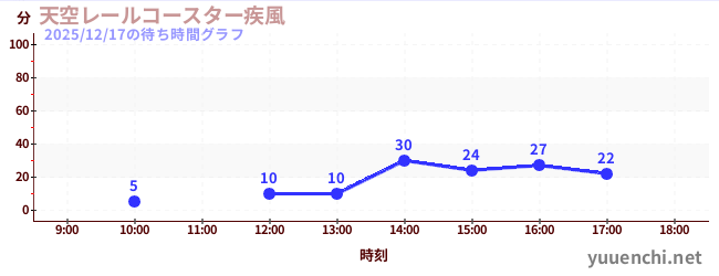 2025/12/17の待ち時間グラフ (天空レールコースター疾風)