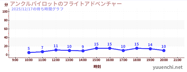 2025/12/17の待ち時間グラフ (アンクルパイロットのフライトアドベンチャー)