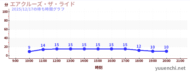 2025/12/17の待ち時間グラフ (エアクルーズ・ザ・ライド)