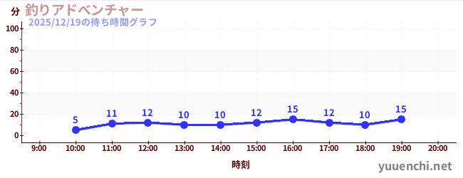 2025/12/19の待ち時間グラフ (釣りアドべンチャー)