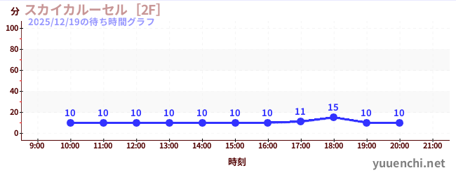 2025/12/19の待ち時間グラフ (スカイカルーセル[2F])