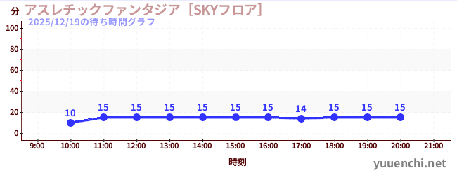 2025/12/19の待ち時間グラフ (アスレチックファンタジア[SKYフロア])