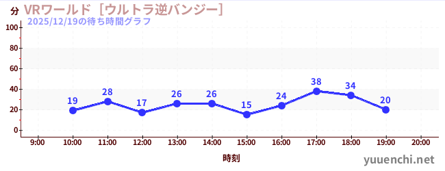2025/12/19の待ち時間グラフ (VRワールド[ウルトラ逆バンジー])