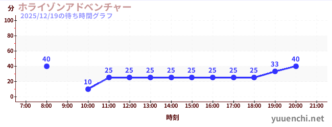 2025/12/19の待ち時間グラフ (ホライゾンアドベンチャー)