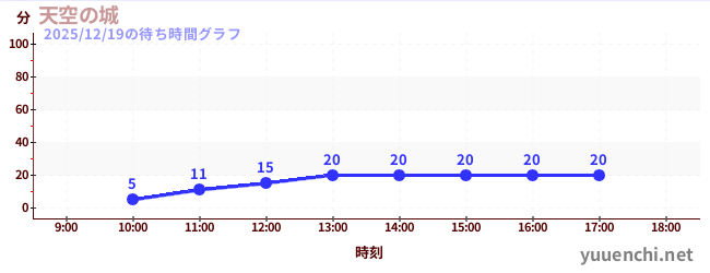 2025/12/19の待ち時間グラフ (天空の城)