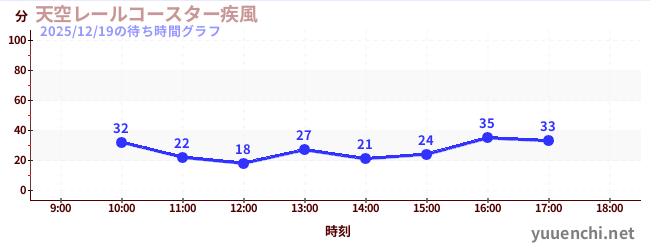 2025/12/19の待ち時間グラフ (天空レールコースター疾風)